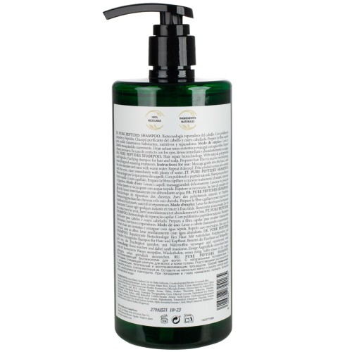 Το σαμπουάν Pure Peptides περιέχει φυσικές πολυφαινόλες, σογιέλαιο, αργινίνη και προβιταμίνη Β5 για να προσφέρει βαθύ καθαρισμό και ενυδάτωση.